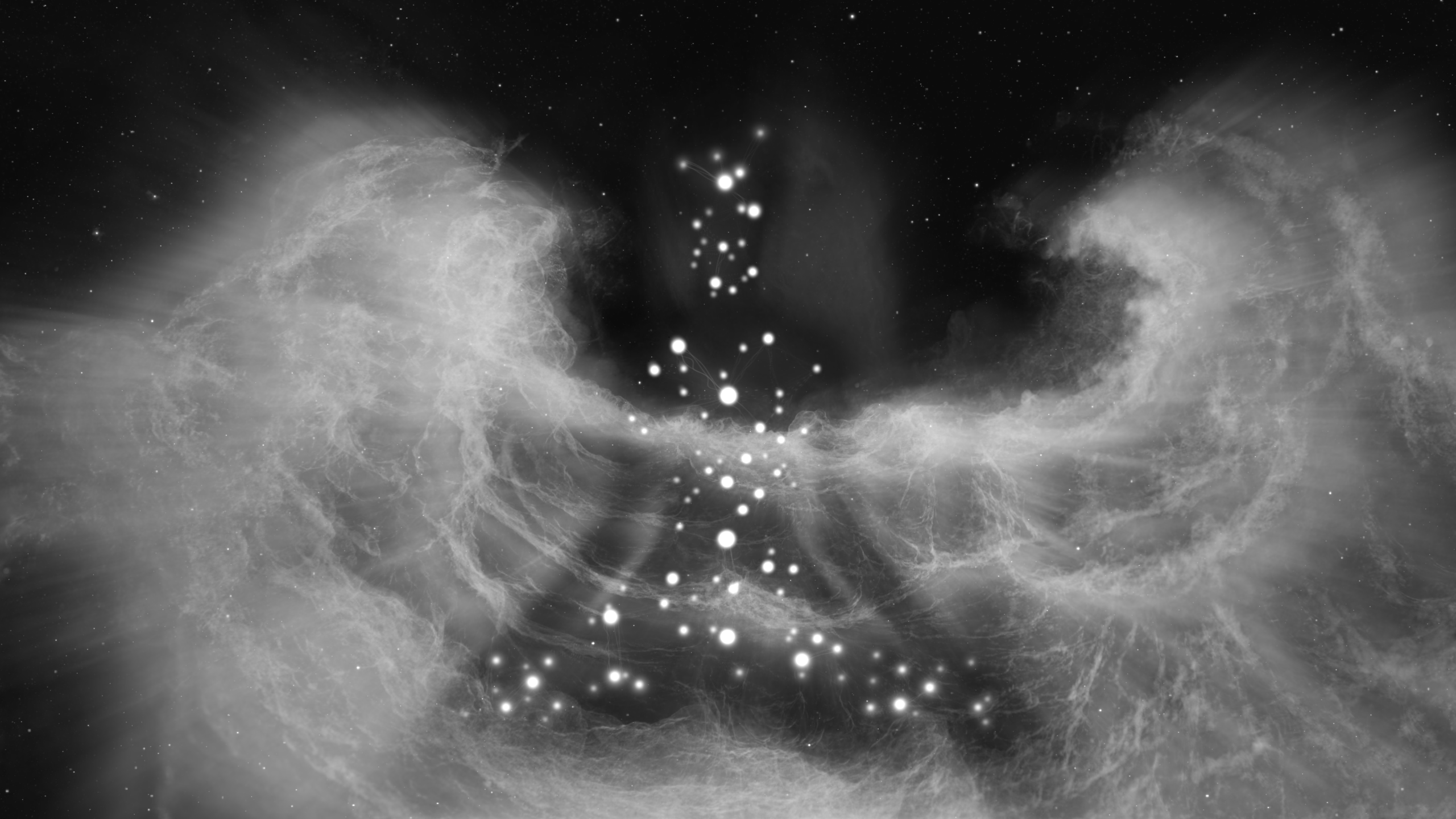 At the end of each voyage, the player receives an engram, a luminous fragment of a larger hidden whole. Seen individually, an engram is a memory-fragment. Seen together, they begin to reveal a deeper order, forming a constellation that traces the outline of a meditative figure suspended in cosmic space.